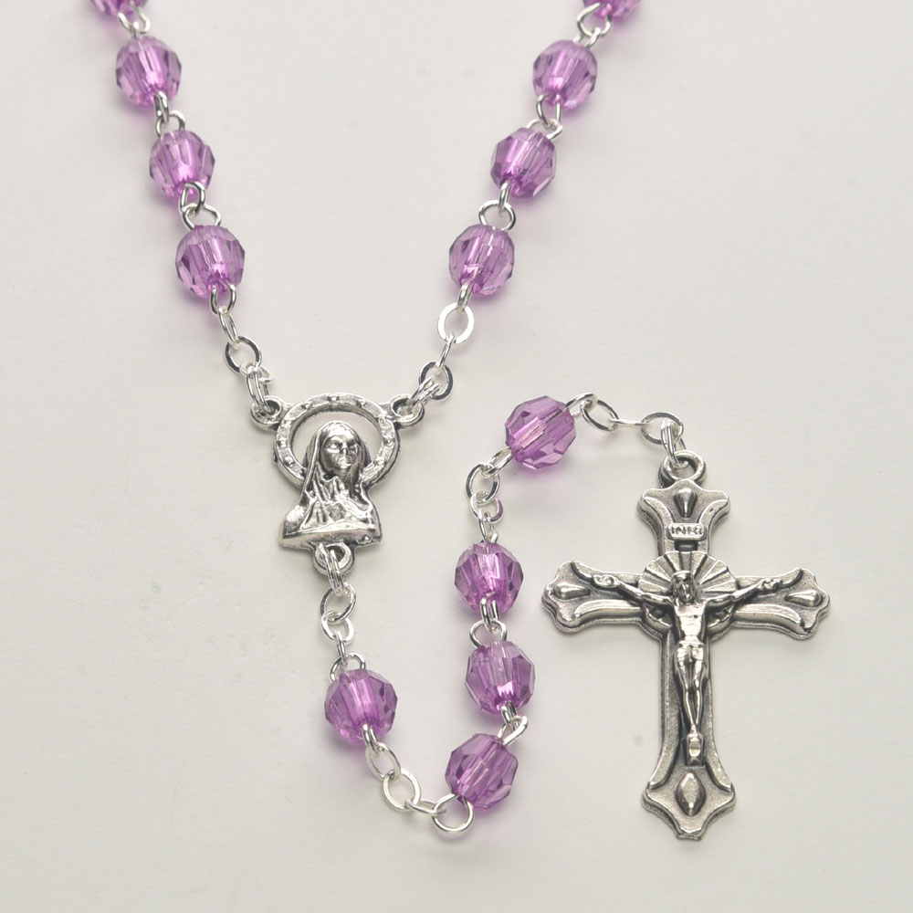 Amethyst Acrylic Crystal Rosary – Bead size 6.5mm – 0.265″ – Length 48cm – 18.75″ Code: RL6L-16 – minimum order 3pcs. Made in Italy
