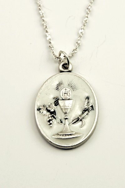 Communion Silver Oxidated Medal + Chain