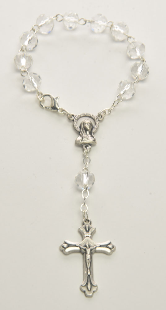 Decade rosary in fire-polished crystal with clasp. Color clear – Bead Size 8mm – 5/16″ – Length 16cm – 6¼” – Code RD337-15L – Minimum purchase 4 pcs. – Made in Italy