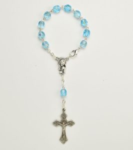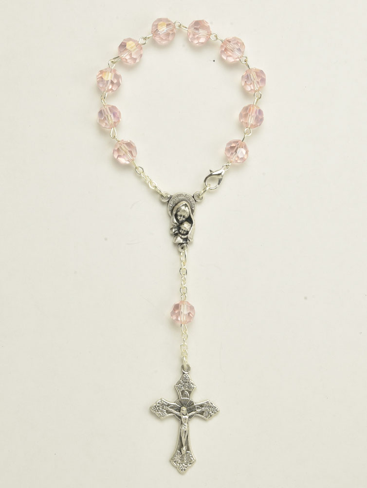 Fire polished crystal decade rosary with clasp. Color Pink – Bead size 8mm – 5/16″ – Length 16cm – 6¼” – Code RDT400-6. Made in Italy