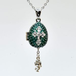 Pendentif mini oeuf médaillon émeraude avec breloque ange gardien + chaîne – taille20mm x 14.7mm /.78 » x.57 » – Boîte cadeau Code : LFA-17 – Fabriqué en Italie