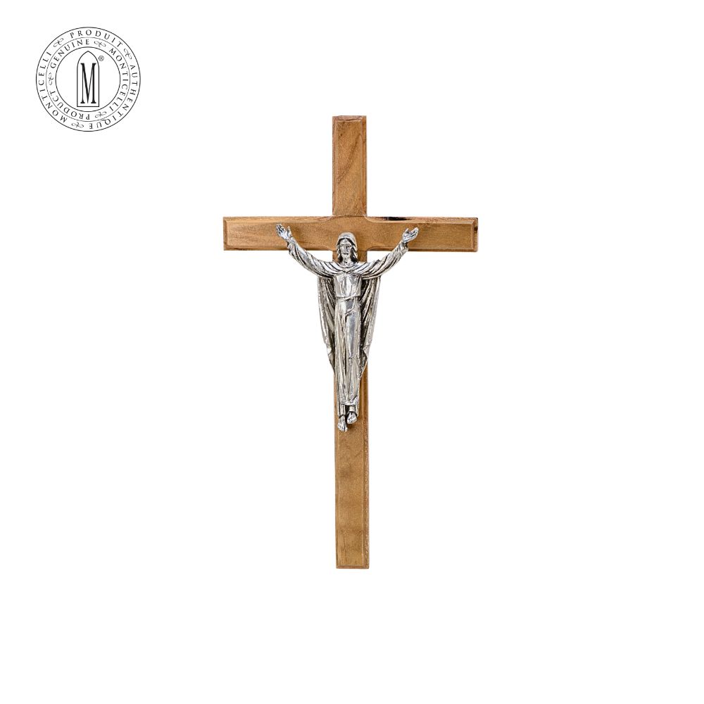 Solid Olive Wood Cross 20 cm Silver-Plated Pewter Risen Christ Made in Italy