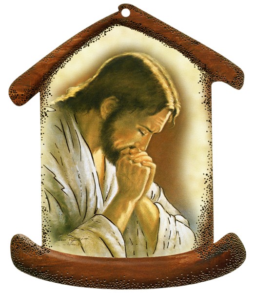 Jesus Praying House Shaped Plaque cm.10.5×12.5 – 4″x5″