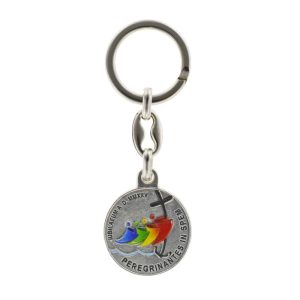 Le porte-clés Jubilé 2025 KH60A07J est un élégant souvenir religieux, fabriqué en Italie. Il présente un logo en couleur du Jubilé 2025 à l’avant et une image de Mater Ecclesiae (Mère de l’Église) au verso.