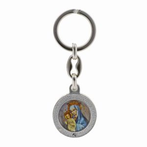The KH60A07J Jubilee 2025 keychain Mater Ecclesiae is an elegant and meaningful Catholic souvenir made in Italy. It features a colored Jubilee 2025 logo on the front and a detailed image of Mater Ecclesiae (Mother of the Church) on the back.