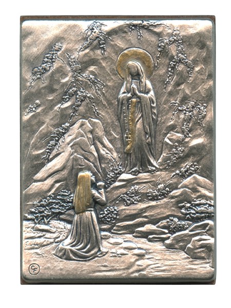 Lourdes and St.Bernadette Pewter Picture cm. 5.5×4.2- 2 1/8″x 1 1/2″
