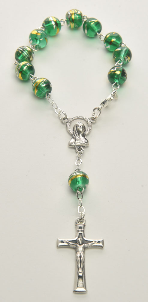 (Glass) Moonstone Decade rosary – color Emerald – Size: bead 8mm – 5/16″ Length 16cm – 6¼” Code: RD54TS -17L – minimum purchase 4 pcs – Made in Italy