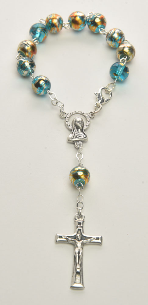 (Glass) Moonstone Decade rosary – color Aqua – Size: bead 8mm – 5/16″ Length 16cm – 6¼” Code: RD54TS -7L – minimum purchase 4 pcs – Made in Italy