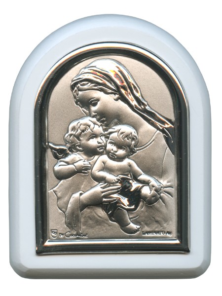Mother and Child Plaque with Stand White Frame cm. 6×7- 2 1/4″x2 3/4″