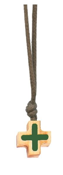 Olive Wood Cross with Engraved Green