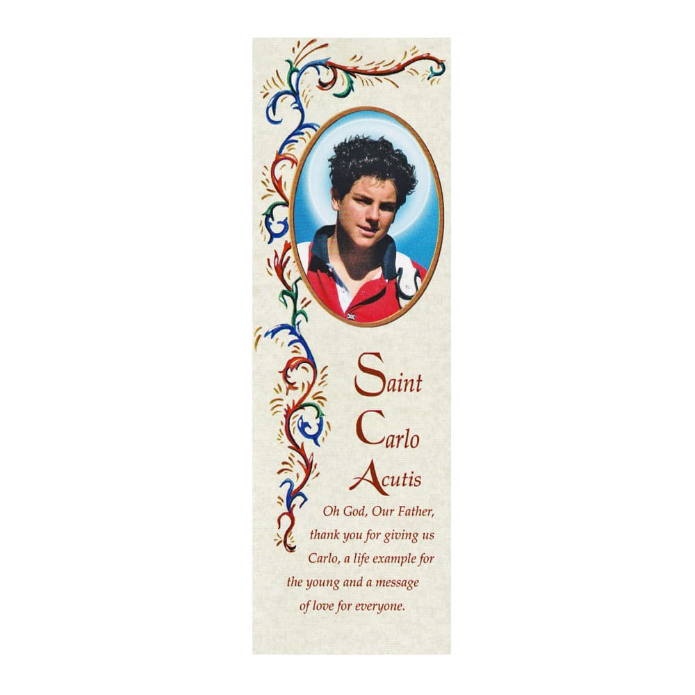 This Carlo Acutis bookmark is printed in English on quality devotional paper and measures 5 x 15 cm (2″ x 6″). Designed to inspire Catholic youth, it features an image and quote from Blessed Carlo Acutis, making it an ideal spiritual gift or catechism giveaway.