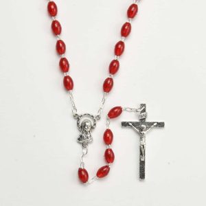 Rosario de plástico – Color luminoso- Tamaño de la cuenta 8x6mm- 0.3″x0.23″ – Longitud 49.5cm – 19½” Código: RLT103- F -pedido mínimo pcs.4 Hecho en Italia