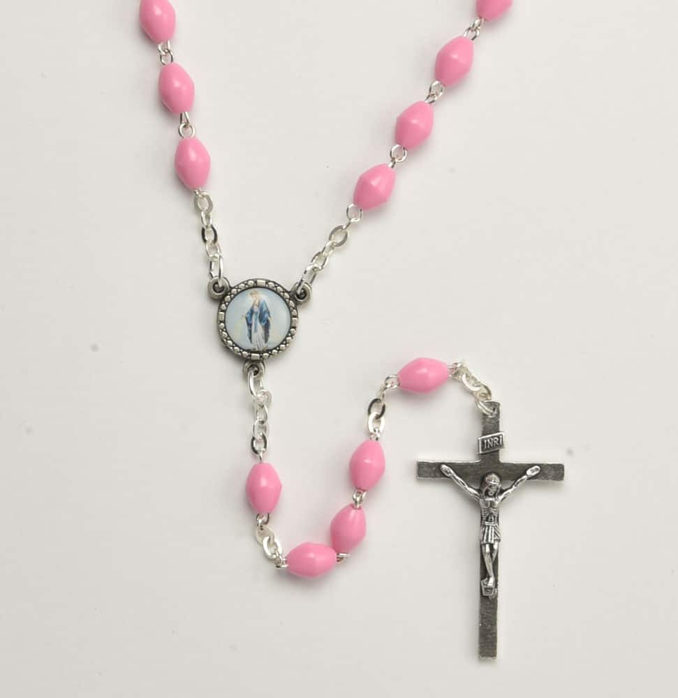 Plastic Rosary – Color Pink – Bead size 8x6mm- 0.3″x0.23″ – Length 49.5cm – 19½” Code: RLT101- 6 -minimum order pcs.4 Made in Italy