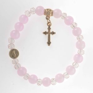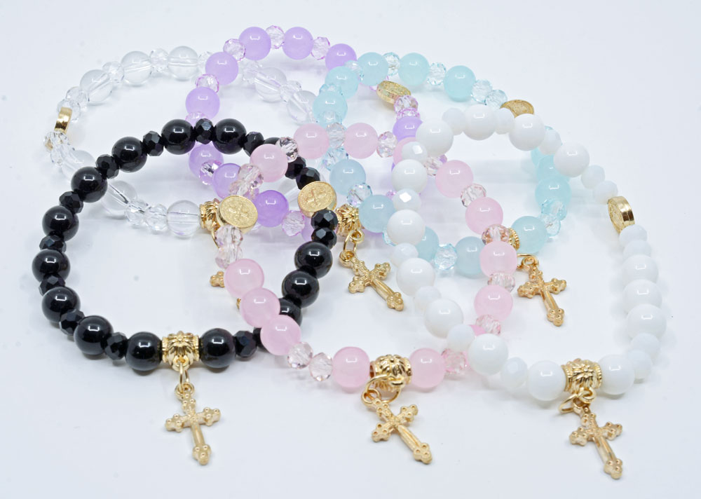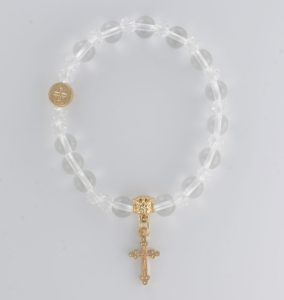 Rosary elastic bracelet glass beads with St. Benedict’s medal. Color Clear – Code RBH8002-16. Minimum purchase 4 pcs.