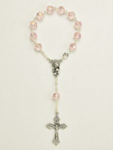 Rosary elastic bracelet glass beads with St. Benedict’s medal. Color Pink – Code RBH8002-6. Minimum purchase 4 pcs.