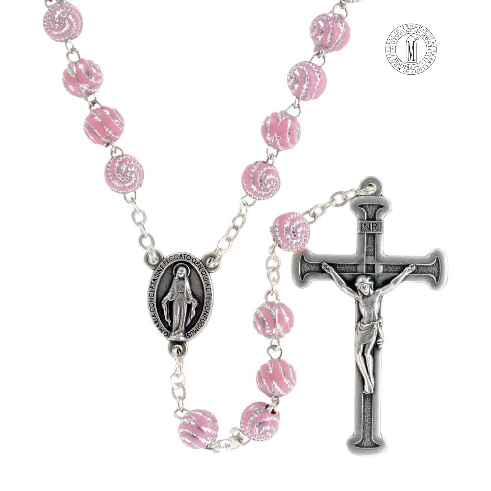 Rosary RN167-6 is crafted with brilliant 8mm pink beads decorated with sparkling rhinestones, creating a striking and elegant design. Measuring 49 cm (19¼”), it features a finely detailed oxidized silver-plated crucifix and a centerpiece depicting the Virgin Mary. A timeless devotional accessory, it is perfect for daily prayer, meditation, or as a thoughtful and meaningful gift for loved ones.