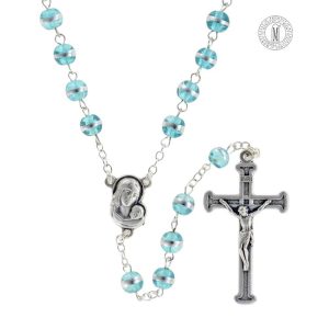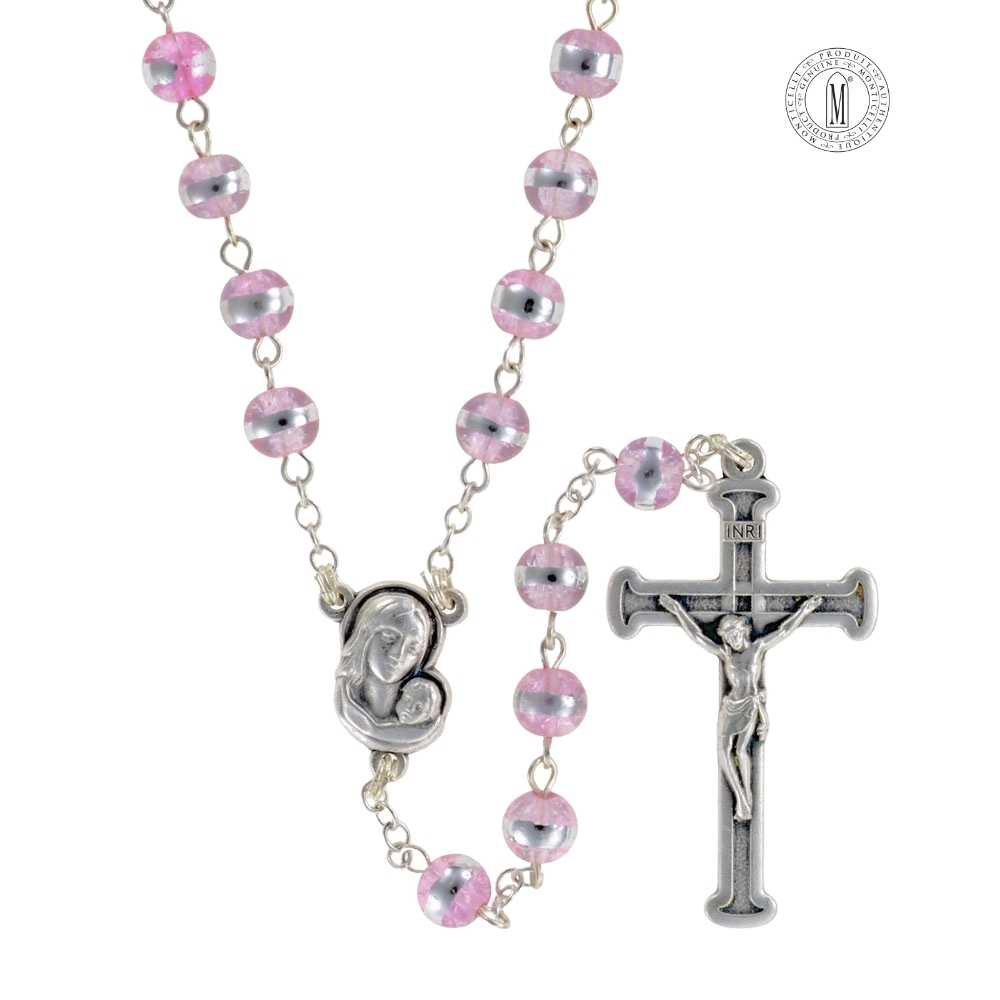 Login to see pricesRosary RN52F-6 with 6mm rose Moonstone (glass) beads featuring a metallic band. 47 cm (18½”) length with silver-plated chain, crucifix, and centerpiece. Made in Italy. Minimum order: 4 pcs.