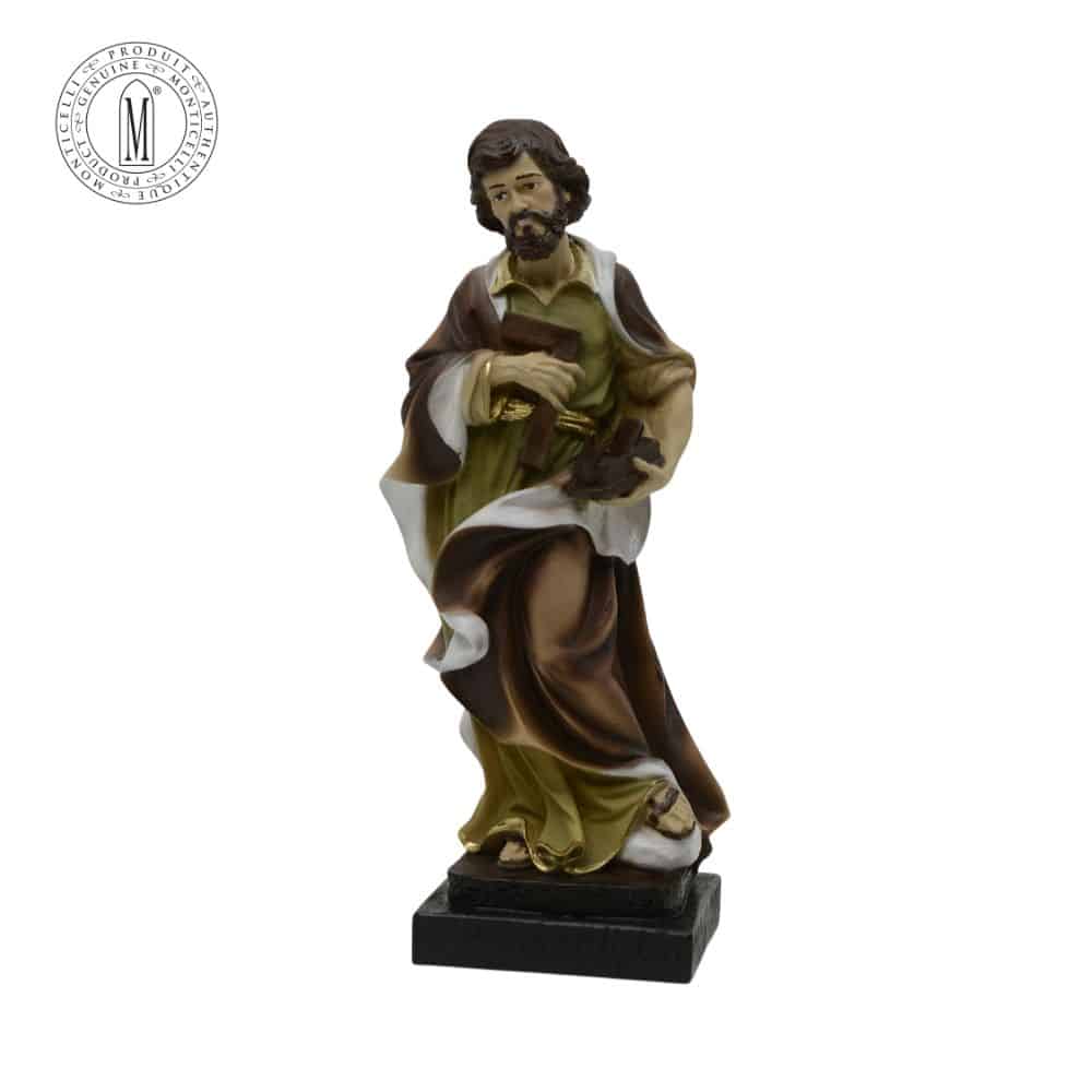 In this statue, Saint Joseph is portrayed in motion, his garments flowing as he carries the instruments of his trade. His serene expression reflects obedience and trust in God’s will, virtues that made him the perfect guardian of Jesus and Mary. Every line and color in this sculpture captures the heart of Christian fatherhood: protection, diligence, and unwavering love. This is more than a decorative piece — it is a powerful spiritual symbol for homes, parishes, or workplaces seeking the intercession of Saint Joseph, the model of faith in action.