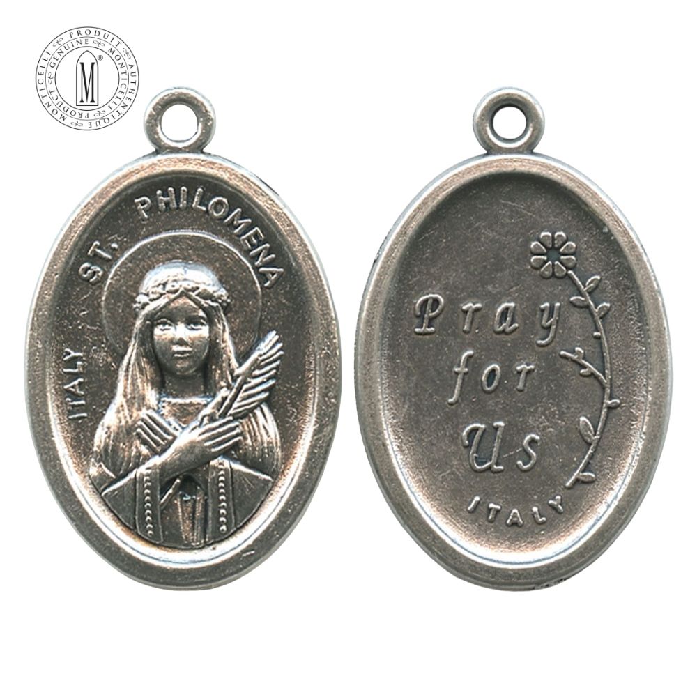 MB65E – St. Philomena Medal, Oxidized Metal, 22 mm (7/8″), Made in Italy