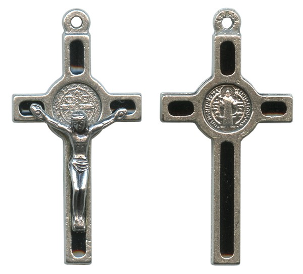 St.Benedict Mignon Metal Crucifix Black Silver Plated cm.2.5- 1″