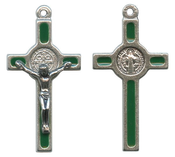 St. Benedict Mignon Metal Crucifix Green Silver Plated cm.2.5- 1″