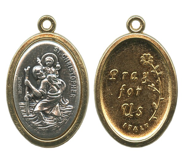St.Christopher / Pray for Us Two Toned Oval Medal