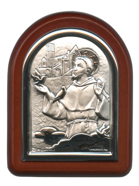 St.Francis with Guardian Angel Plaque with Stand Brown Frame cm. 6×7- 2 1/4″x2 3/4