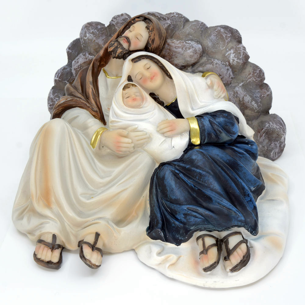 Celebrate the true meaning of Christmas with this beautifully crafted Holy Family figurine (item code: SYL1009A-328). Standing at 23 cm (9″), this detailed polyresin statue portrays Joseph, Mary, and the Infant Jesus resting together in a moment of peace and love.