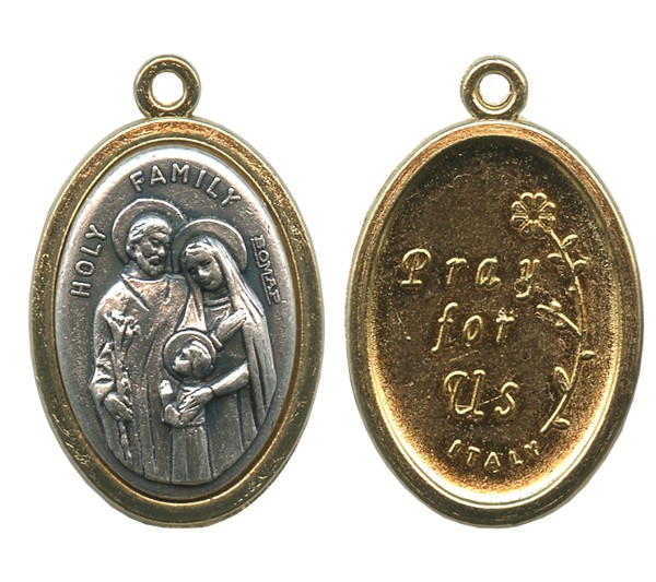 The Holy Family / Pray for Us Two Toned Oval Medal